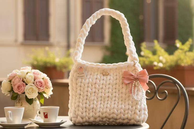 Un sac au crochet délicatement façonné, aux teintes nacrées et aux finitions raffinées. Une création romantique inspirée de la douceur italienne, parfaite pour sublimer chaque instant avec élégance et tendresse.